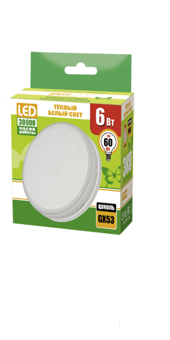 Лампа светодиодная 6 Вт GX53 3000К таблетка матовое стекло, тёплый белый