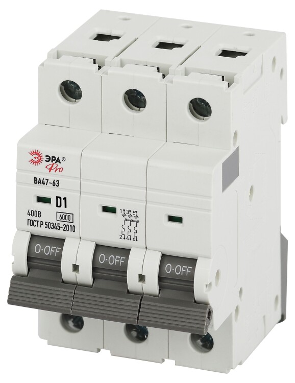 Автоматический выключатель ЭРА PRO VA63-3P01D6 ВА47-63 3P 1А кривая D 6кА