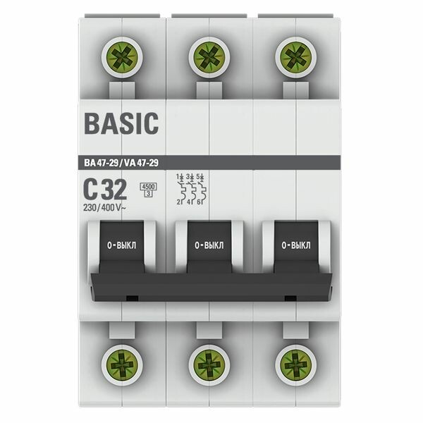 Автомат. выкл. 3-пол. 32А тип C 4,5кА серия ВА 47-29 EKF Basic