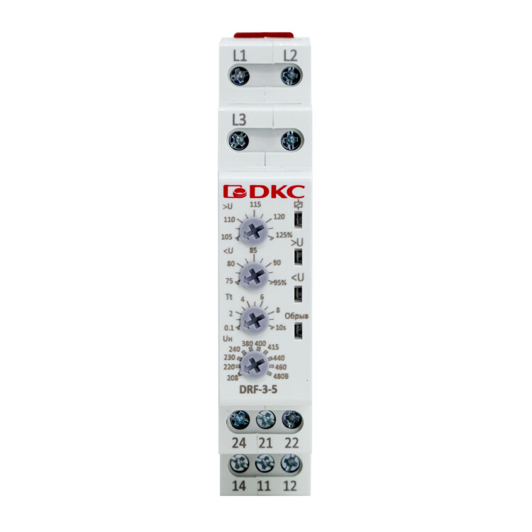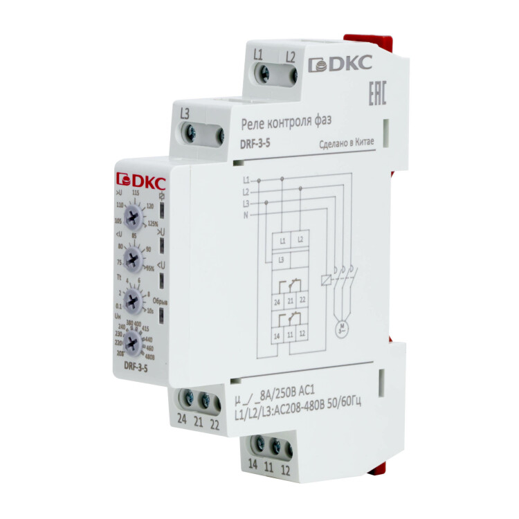 Реле контроля фаз, 3 фазы, тип DRF, контроль напряжения, контроль обрыва фаз, конфигурация контакта 2CO, 208-480В