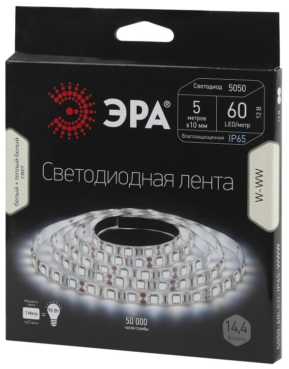 Светодиодная гибкая лента SMD5050 DC12V, 60 LED/м, Тёплый белый+Белый IP65