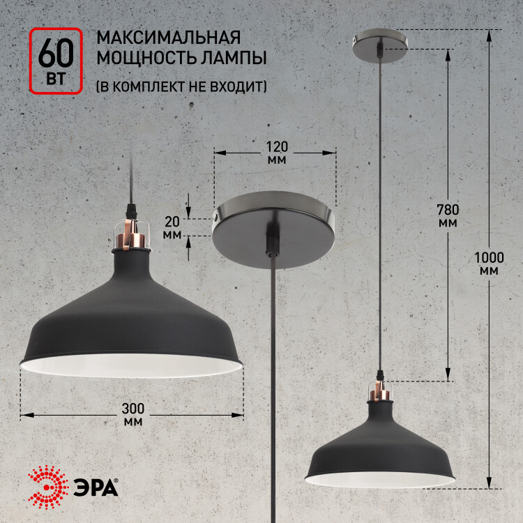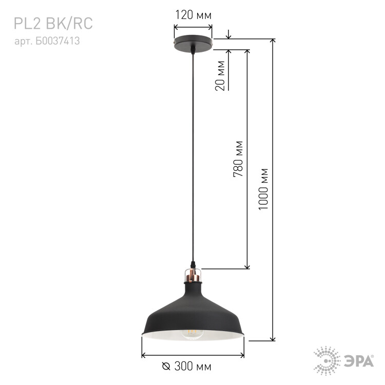 Светильник подвесной 60Вт E27 d300*1618 мм шагрень черный/медь PL2 BK/RC