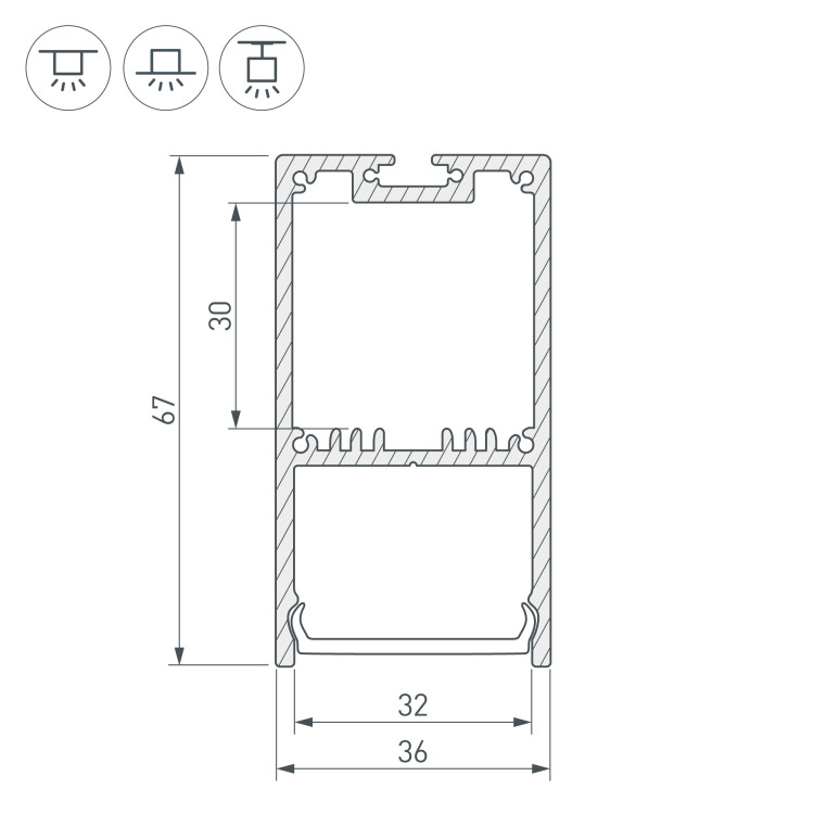 Алюминиевый Профиль с экраном SL-LINE-3667-2500 BLACK+OPAL