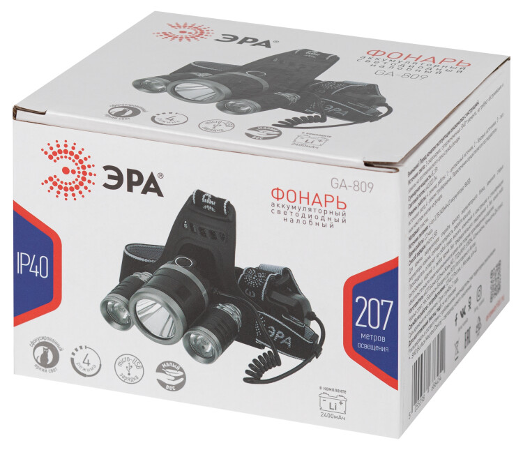 Фонарь налобный светодиодный GA-809 аккумуляторный алюминиевый 3 режима трехламповый High Power