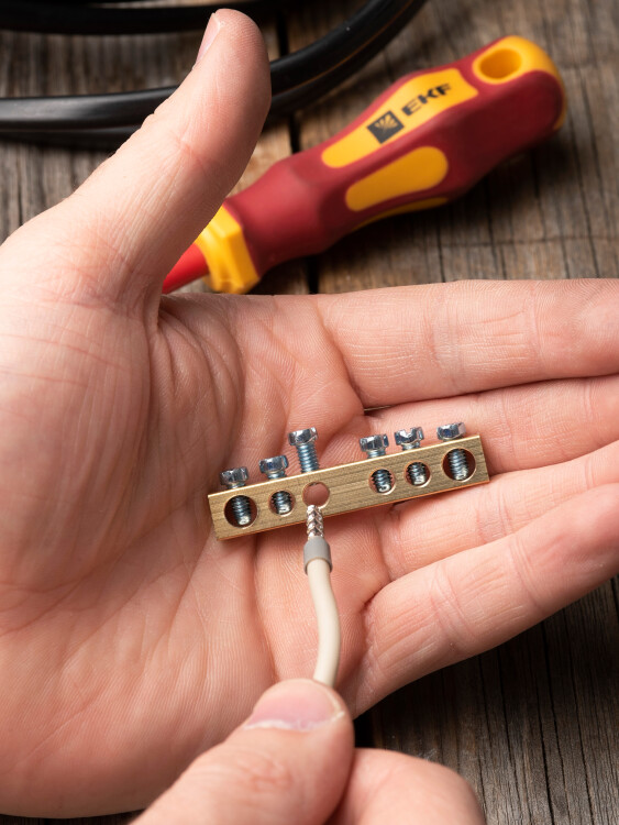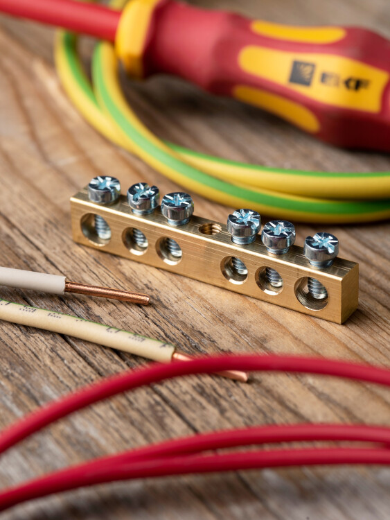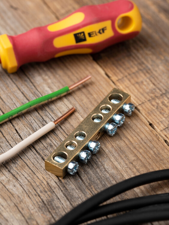 Шина PEN "ноль-земля" (6x9мм) 6 отверстий латунь крепеж по центру EKF PROxima