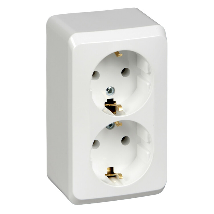 Розетка 2х2P+E без шторок белый Этюд