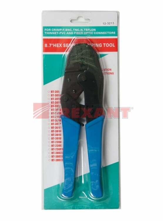 Кримпер REXANT HT-301 G для обжима F и BNC разъемов RG-59, RG-58, RG-62, RG-174, Fiber Optic