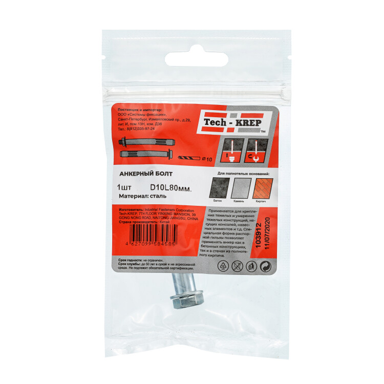 Анкерный болт 10х80 (1 шт) - пакет