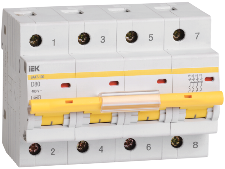 Автомат. выкл. 4-пол. 63А тип D 10кА серия ВА47-100 х-ка D ИЭК