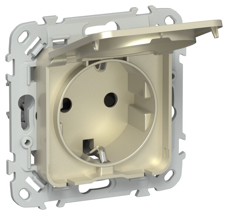Розетка 2P+E IP44 с крышкой 16А безвинтовое креплениеРСшкр11-1-44-ФлШ шампань FLITE