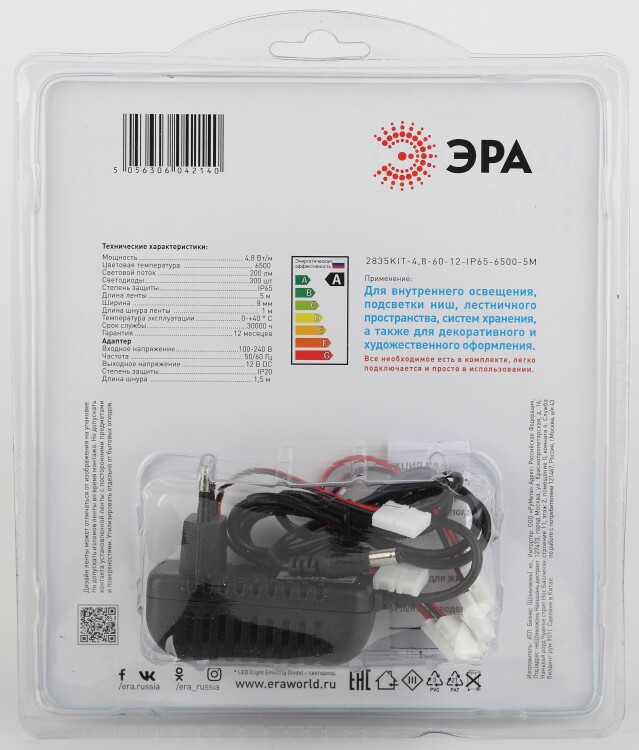 ЭРА Комплект светодиодной ленты 2835kit-4,8-60-12-IP65-6500-5m (50/600)