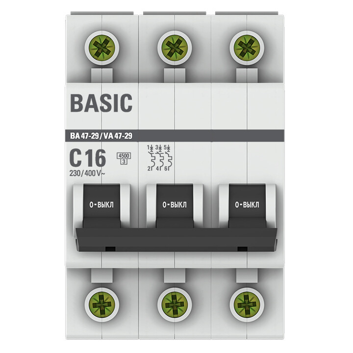 Автомат. выкл. 3-пол. 16А тип C 4,5кА серия ВА 47-29 EKF Basic