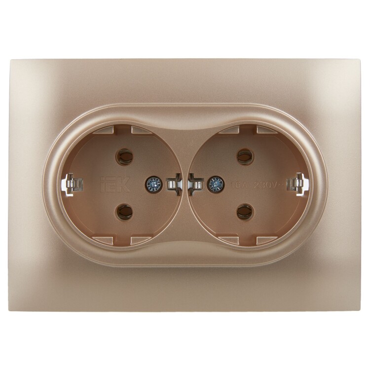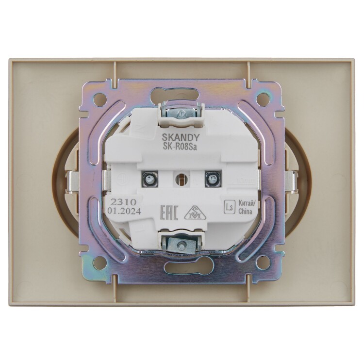 Розетка 2-местная с заземлением без защитных шторок 16А в сборе SK-R08Sa песочный SKANDY