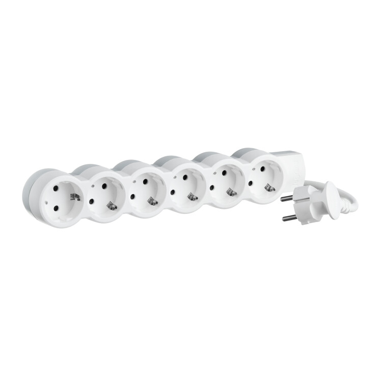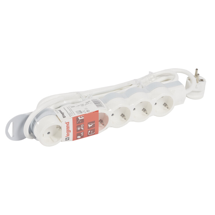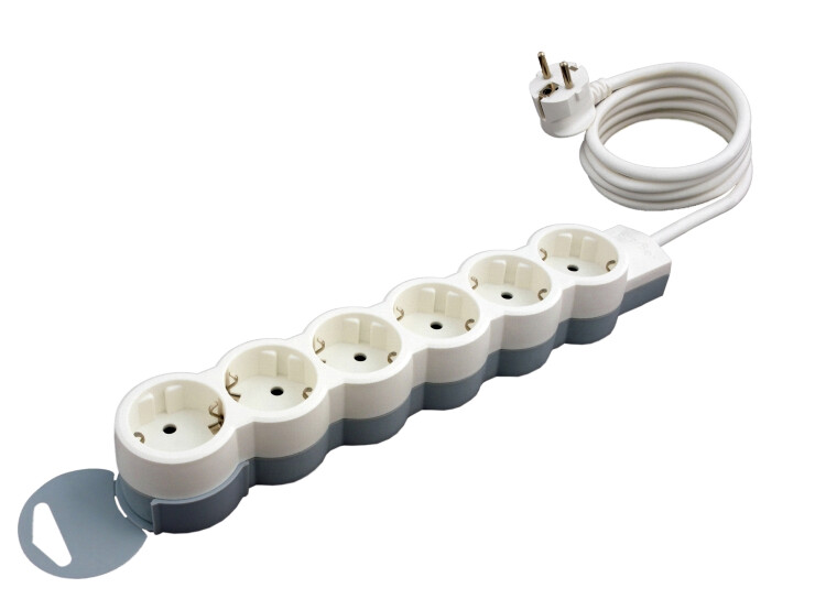 Удлинитель,6розеток, длина 5 м, 16А, ПВС 3х1 мм², с/з, IP20, пластик, белый, Стандарт