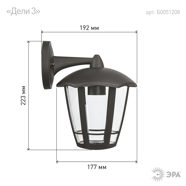 Светильник настен. для Л.Н. 40Вт E27 IP44(У1) «Дели 3» серый вниз НБУ 07-40-004