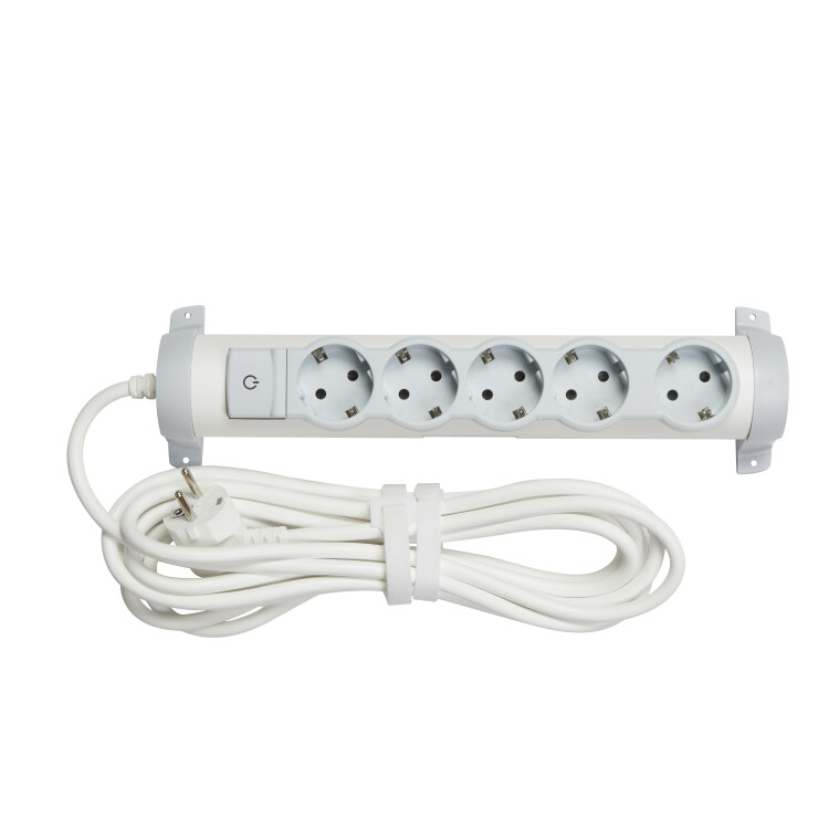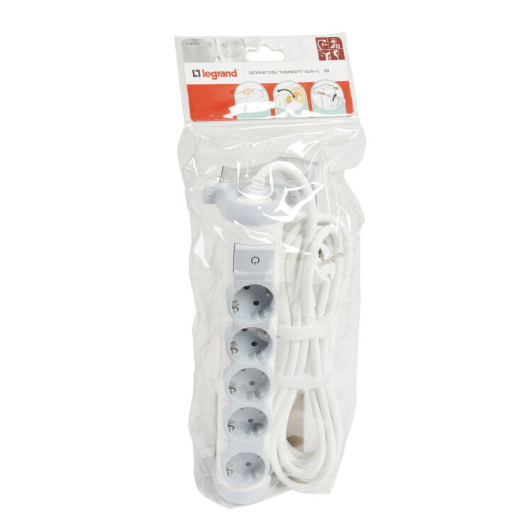 Удлинитель,5розеток, длина 5 м, 16А, ПВС 3х1 мм², с/з, IP20, термопласт, белый, Комфорт