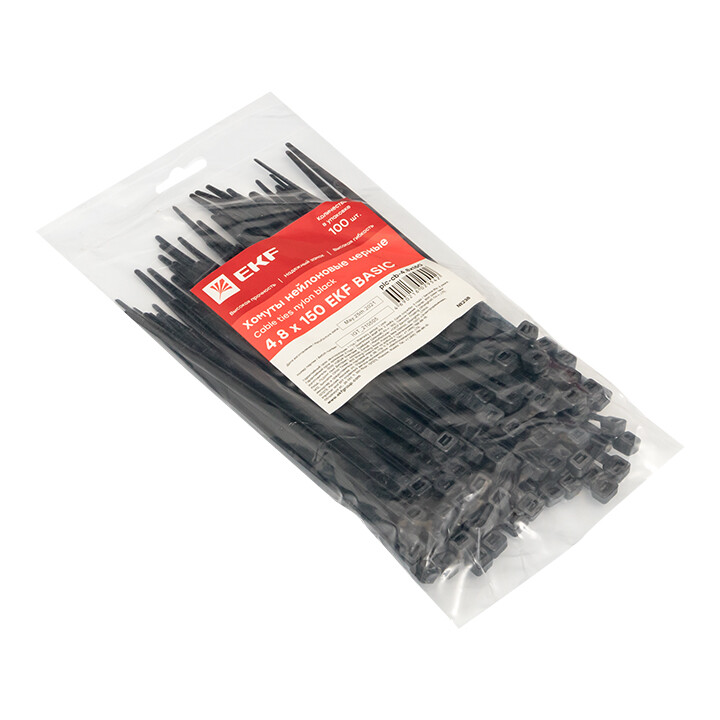 Хомут нейлоновый черный (4,8х150) (100шт.) EKF Basic
