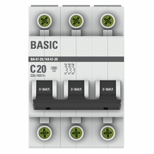 Автомат. выкл. 3-пол. 20А тип C 4,5кА серия ВА 47-29 EKF Basic