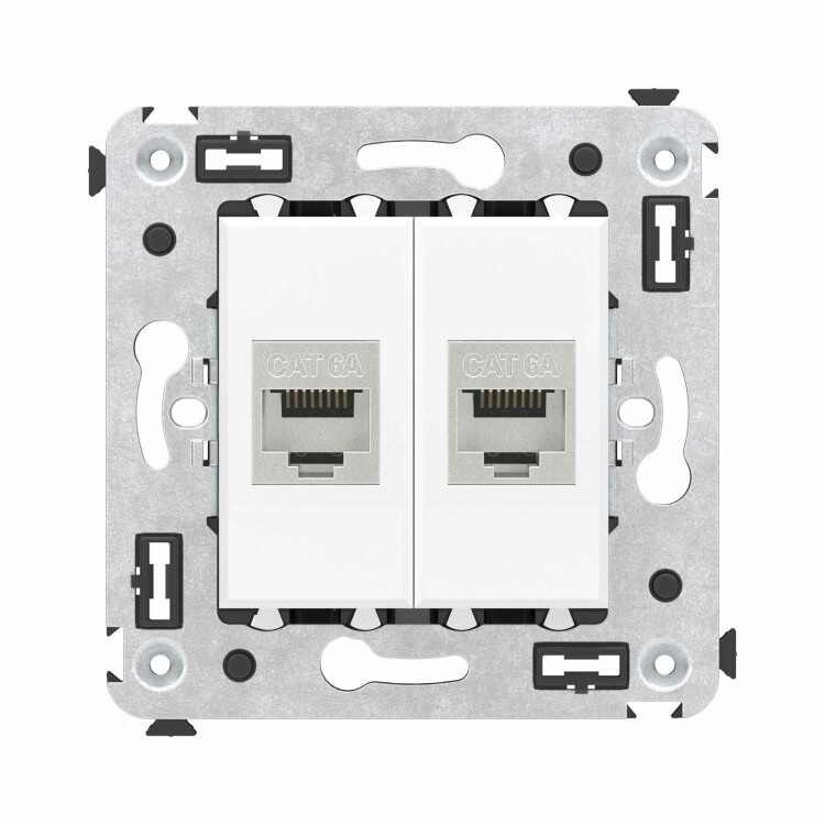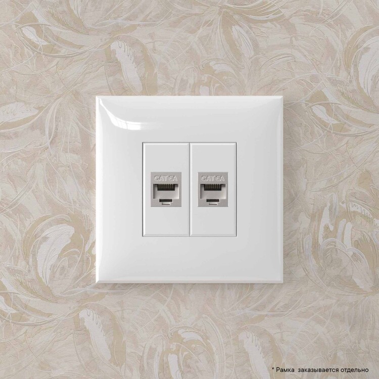 Компьютерная розетка RJ-45 без шторки в стену, кат.6A двойная экранированная, "Avanti", "Белое облако"