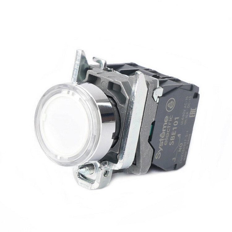 Кнопка SB4 с подсветкой в сборе модульная 22мм белая металл 24ВDC 1НО+1НЗ