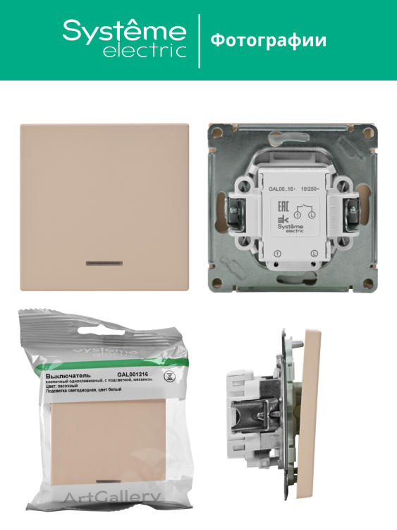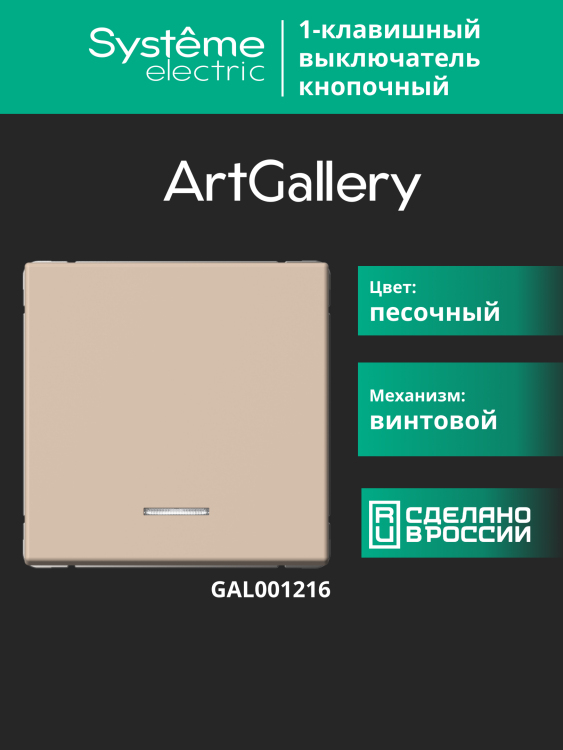 Systeme Electric ArtGallery Песочный Выключатель 1-клавишный кнопочный с подсв. 10А, механизм