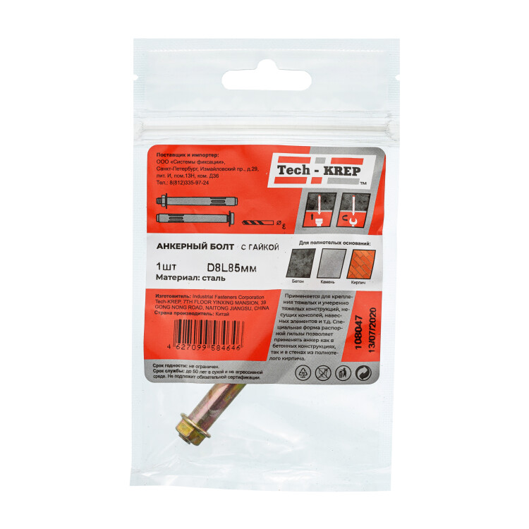 Анкерный болт с гайкой 8х85 (1 шт) - пакет