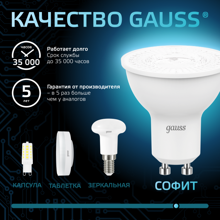 Лампа светодиодная 9 Вт 230В GU10 d=51mm, 4100К холодный