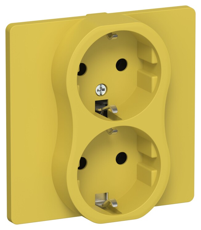 Розетка 2х2P+E в сборе Classic безвинтовое крепление 16А РС12-1-К-ФлЖК желтый карри FLITE