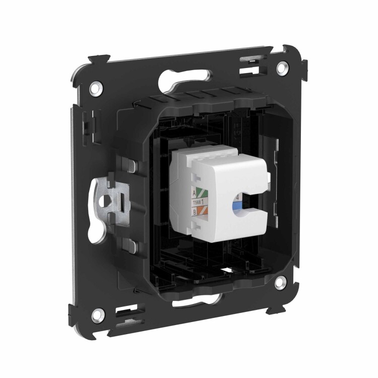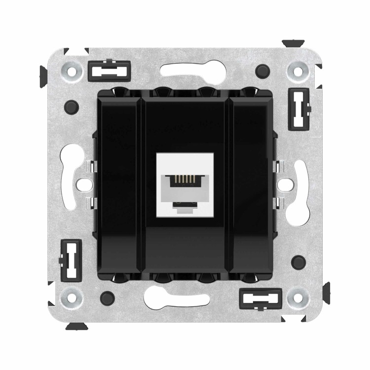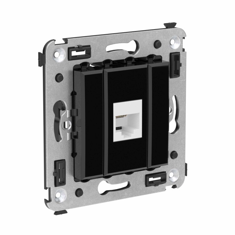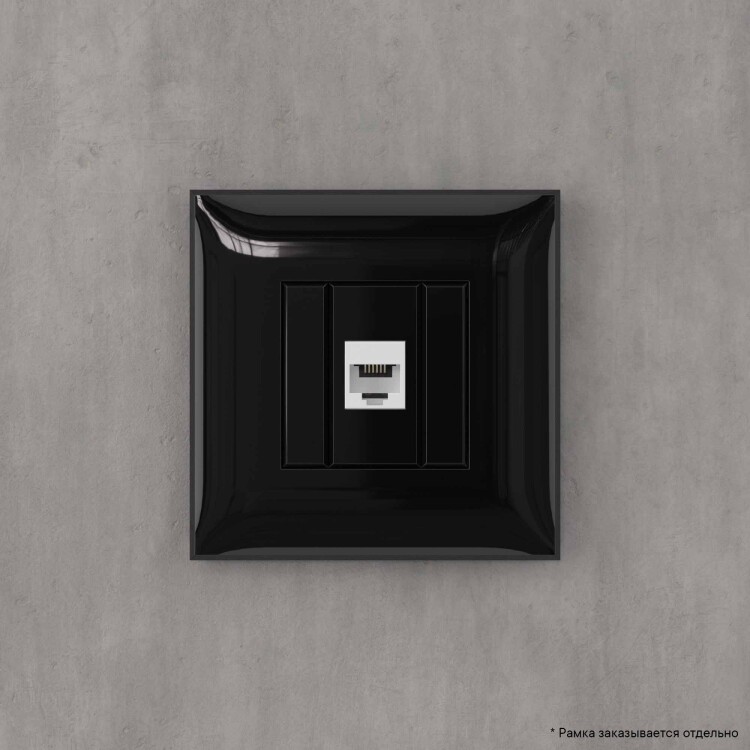 Телефонная розетка RJ-12 без шторки в стену одинарная, "Avanti", "Черный квадрат"