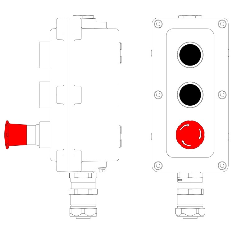 Взрывонепроницаемый пост управления из алюминия LCSD-03-B-MC-P1B(11)x1-P1B(11)x1-P6R(11)x1-PCMB-KAEPM3MHK-26 / 1Ex d IIB T5 Gb / Ex tb IIIC T95°С Db IP66