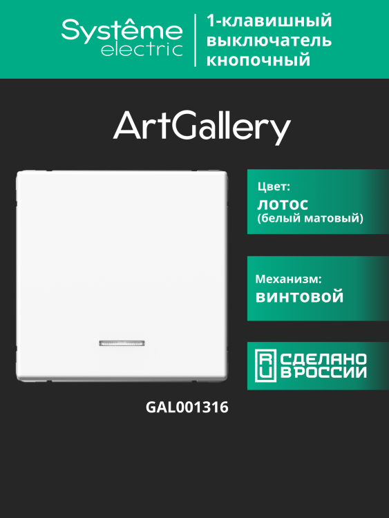 Systeme Electric ArtGallery Лотос Выключатель 1-клавишный кнопочный с подсв. 10А, механизм