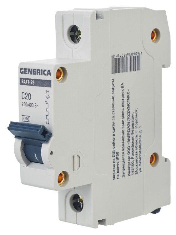 Авт. выкл. ВА47-29 1Р 20А 4,5кА х-ка С GENERICA