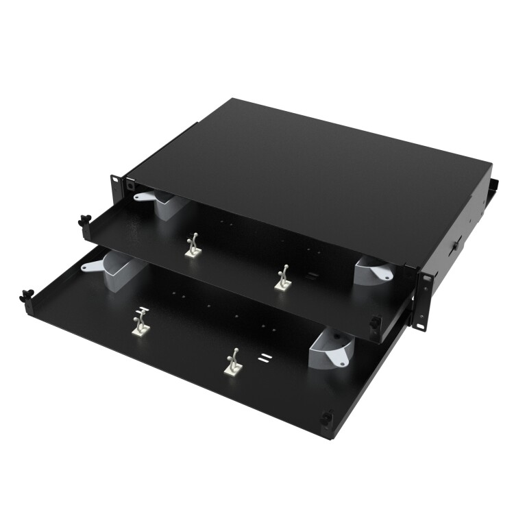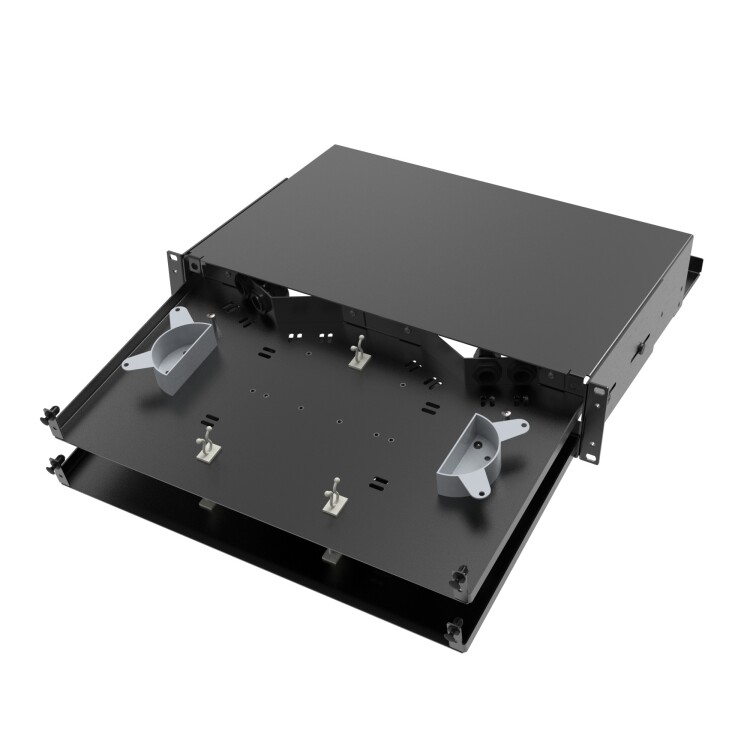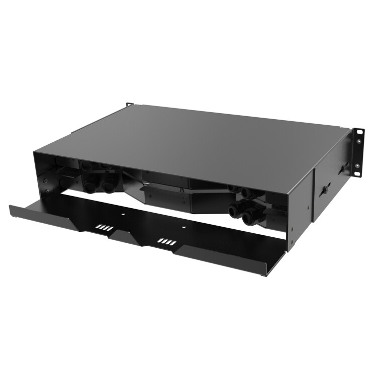 Оптическая полка выдвижная, без лицевой панели, неукомплектованная, 2U, черная