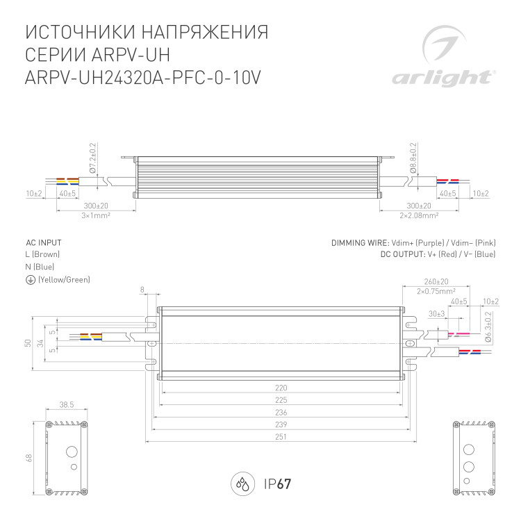 Блок питания 24V 320W ARPV-UH24320A-PFC-0-10V (13.3A) IP67