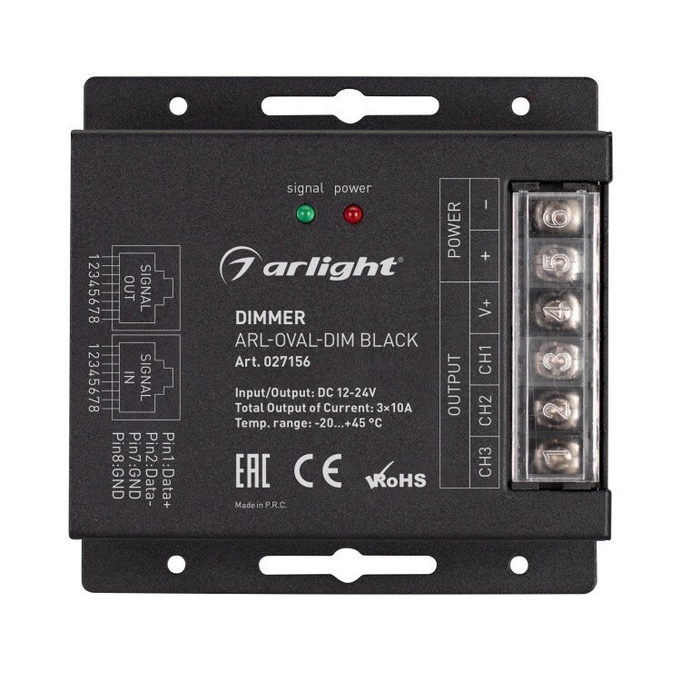 Диммер ARL-OVAL-DIM Black (12-24V, 3x10A, ПДУ Овал, RF, RJ45) (Arlight, IP20 Металл, 3 года)