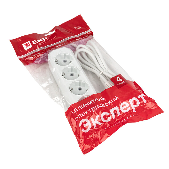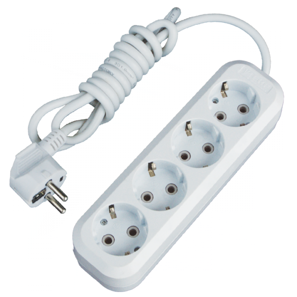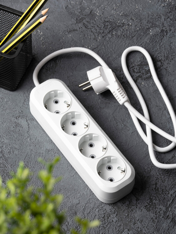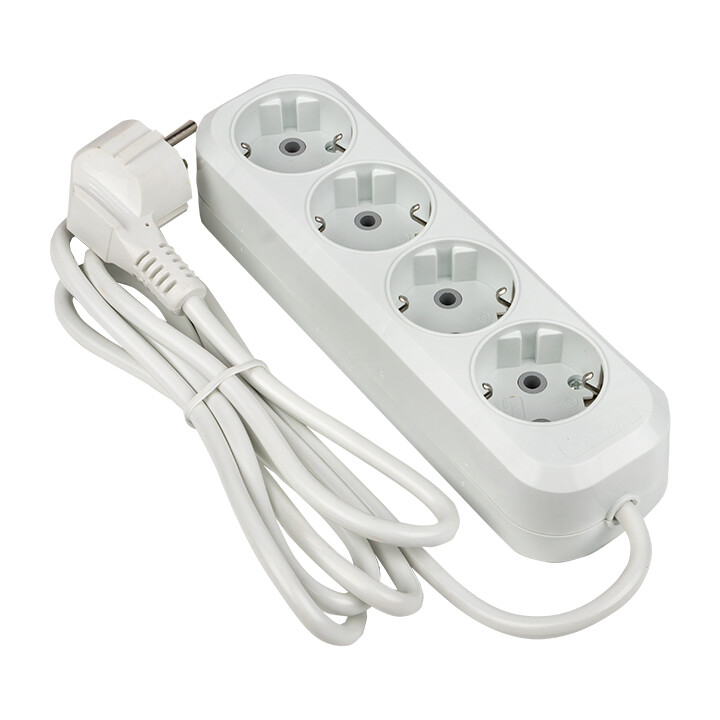 Удлинитель, 4 розетки, длина 2 м, 16А, ПВС3х1 мм?, с/з, IP20, термопласт, белый, PROxima