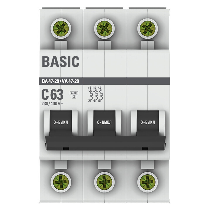 Автомат. выкл. 3-пол. 63А тип C 4,5кА серия ВА 47-29 EKF Basic
