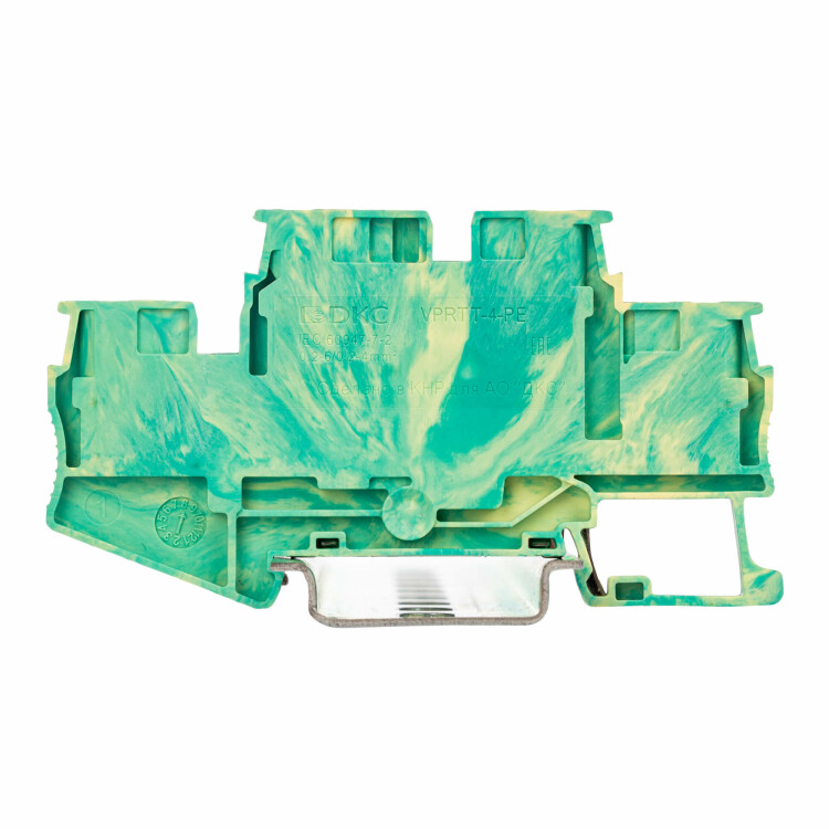 Клемма пружинная 4-х пров. 2-х уров. с заземлением, 4 мм2, жёлто-зелёная, зажим push-in