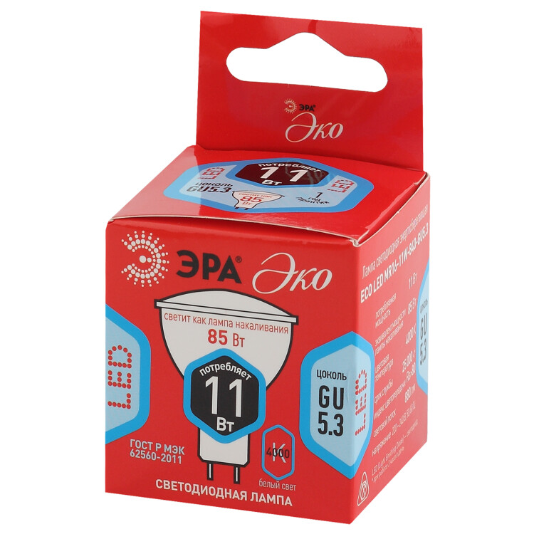 ECO LED MR16-11W-840-GU5.3 ЭРА (диод, софит, 11Вт, нейтр, GU5.3) (10/100/4800)