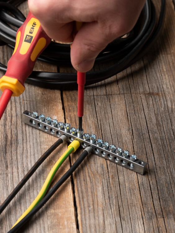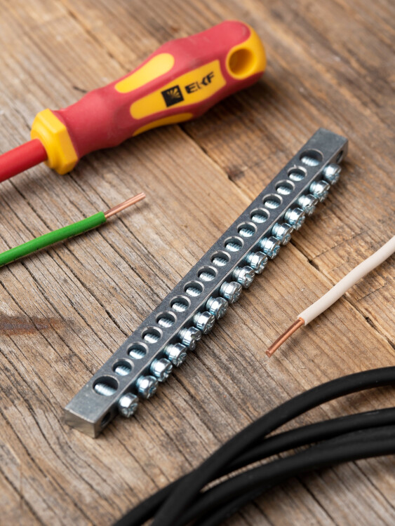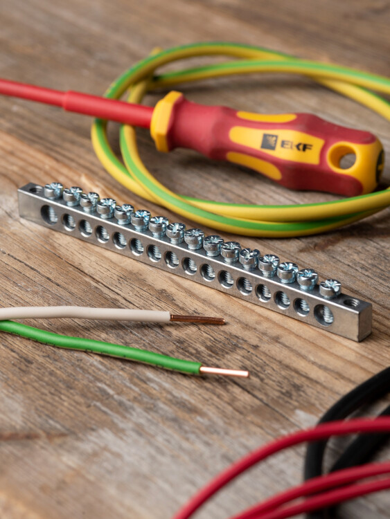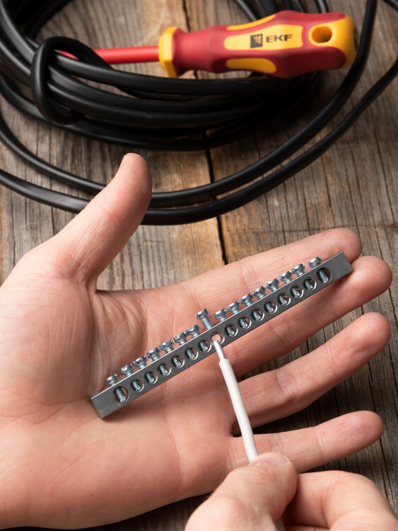 Шина PEN "ноль-земля" (6x9мм) 16 отв. цинк крепеж по краям EKF