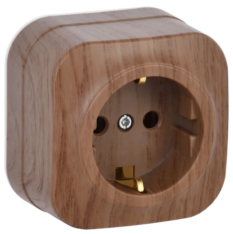 Розетка 2P+E 16А накладной монтаж РСш20-3-ХД дуб GLORY IEK