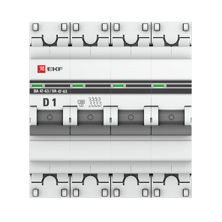 Автомат. выкл. 4-пол. 1А тип D 4,5кА серия ВА 47-63 EKF PROxima