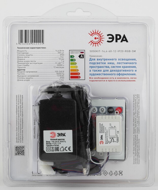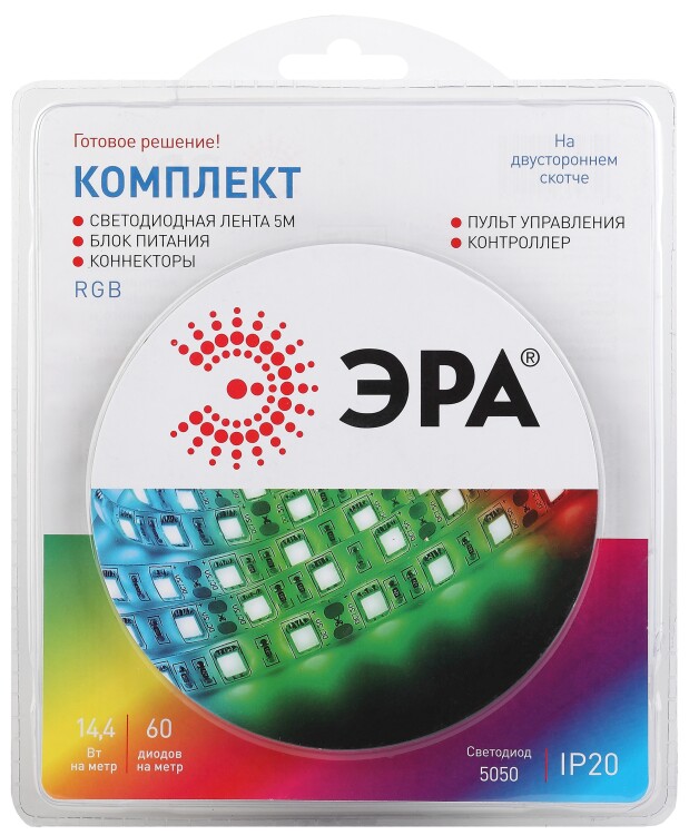 ЭРА Комплект светодиодной ленты 5050kit-14,4-60-12-IP20-RGB-5m (50/300)