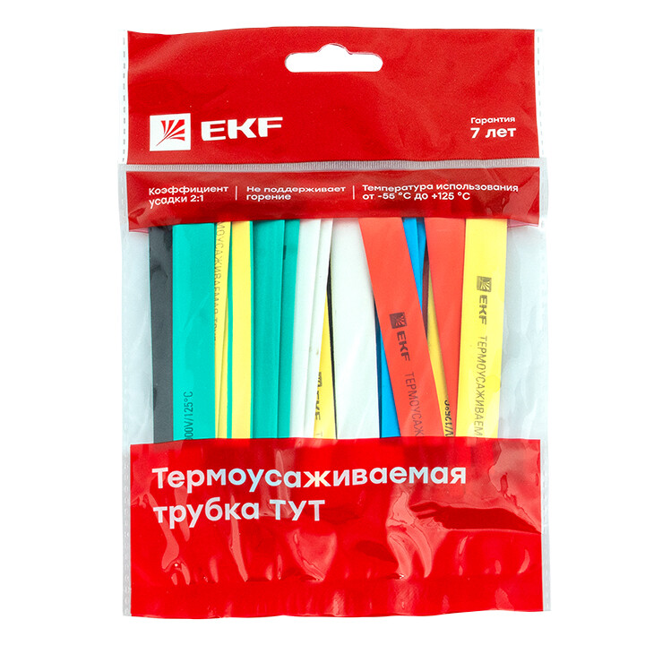 Трубка термоусаживаемая ТУТ нг 12/6 набор:7 цветов по 3шт. 100мм. EKF PROxima