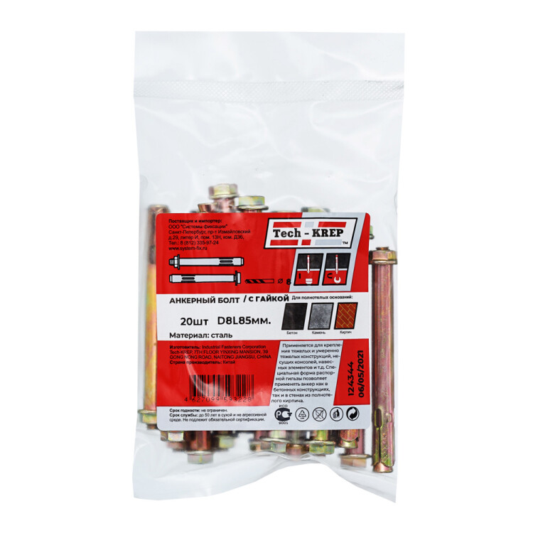 Анкерный болт с гайкой 8х85 (упак. 20 шт) - пакет