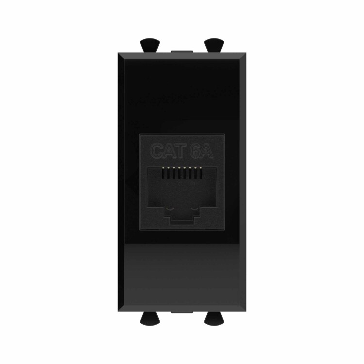 Компьютерная розетка RJ-45 без шторки модульная, кат.6А, "Avanti", "Черный квадрат", 1 модуль
