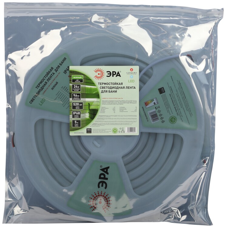 Лента светодиодная термостойкая для бани ЭРА LS2835-9,6-120-24-G-IP68-3 year-5m (зеленый)