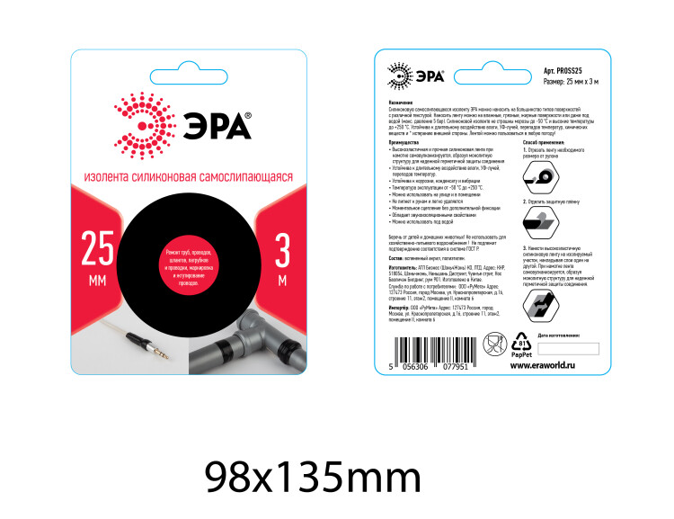 Изолента ЭРА PRO PROSS25 силиконовая самослипающаяся 25 мм х 3 м черная