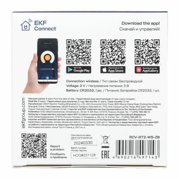 Умный беспроводной выключатель Стокгольм 2-кл. белый Zigbee EKF Сonnect