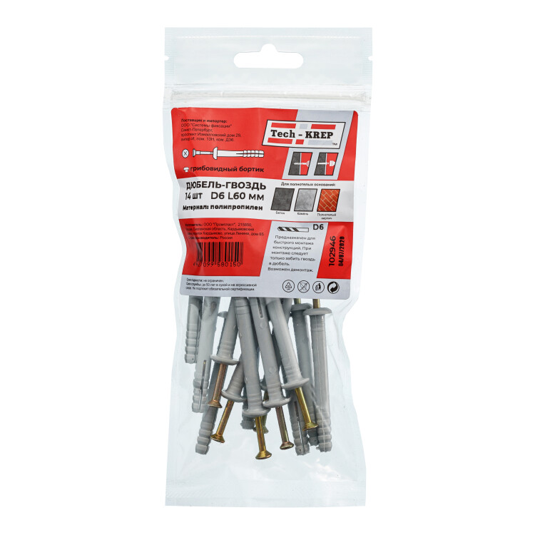 Дюбель-гвоздь 6х60 гриб. манжета (полипропилен) (14 шт) - пакет